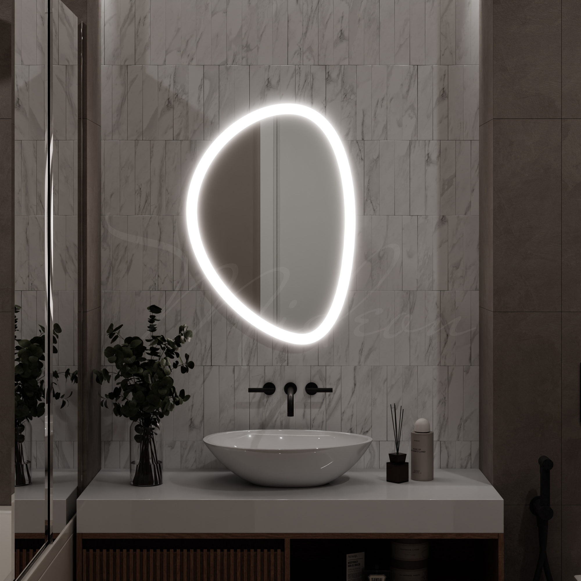 - Монтаж зеркала с подсветкой стоит 30% от стоимости зеркала, но не менее 3200 руб.
