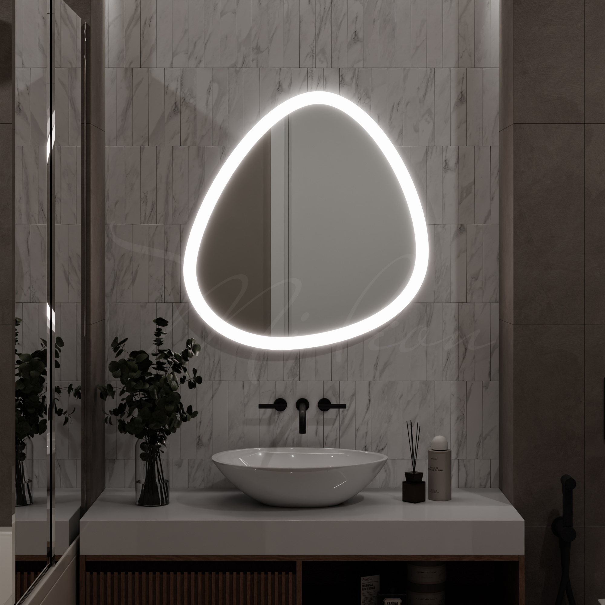 - Монтаж зеркала с подсветкой стоит 30% от стоимости зеркала, но не менее 3200 руб.